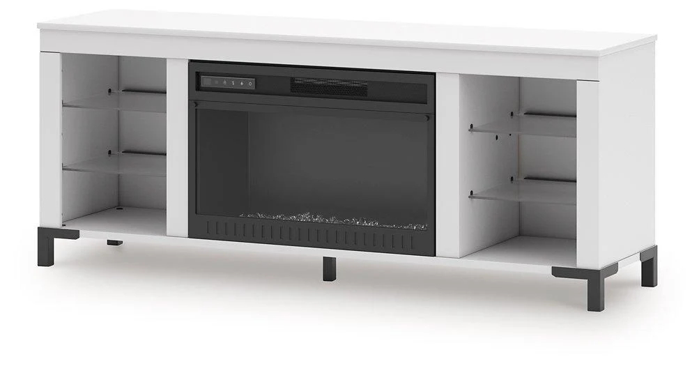 Level up your gaming experience and make movie nights to remember. This TV stand with electric fireplace extends your entertainment beyond the screen. Its built-in fireplace brings the heat, synchronizing with LED backlighting on the shelves. And you can customize the vibe with three trendy color options: blue, white and red. Modern function. Captivating, cool style. With this TV stand, revamp your home’s recreational hub like never before.